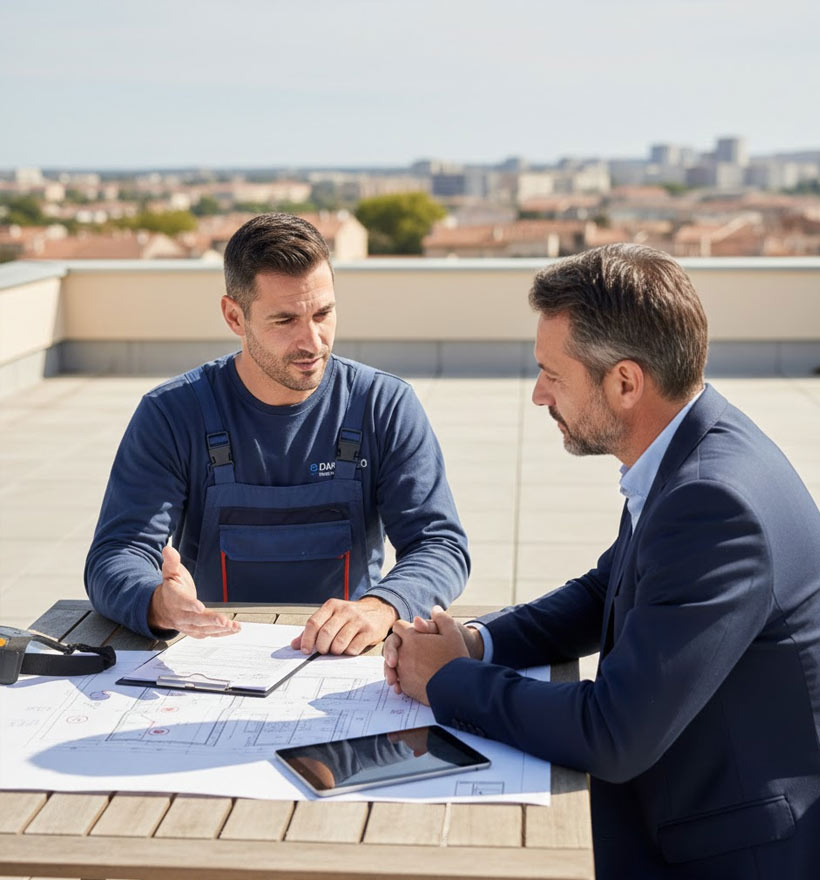 Depuis près de 15 ans, nous accompagnons particuliers, professionnels, syndics et copropriétés pour sécuriser toitures, terrasses, balcons et façades avec une approche rigoureuse et des solutions conçues pour durer.